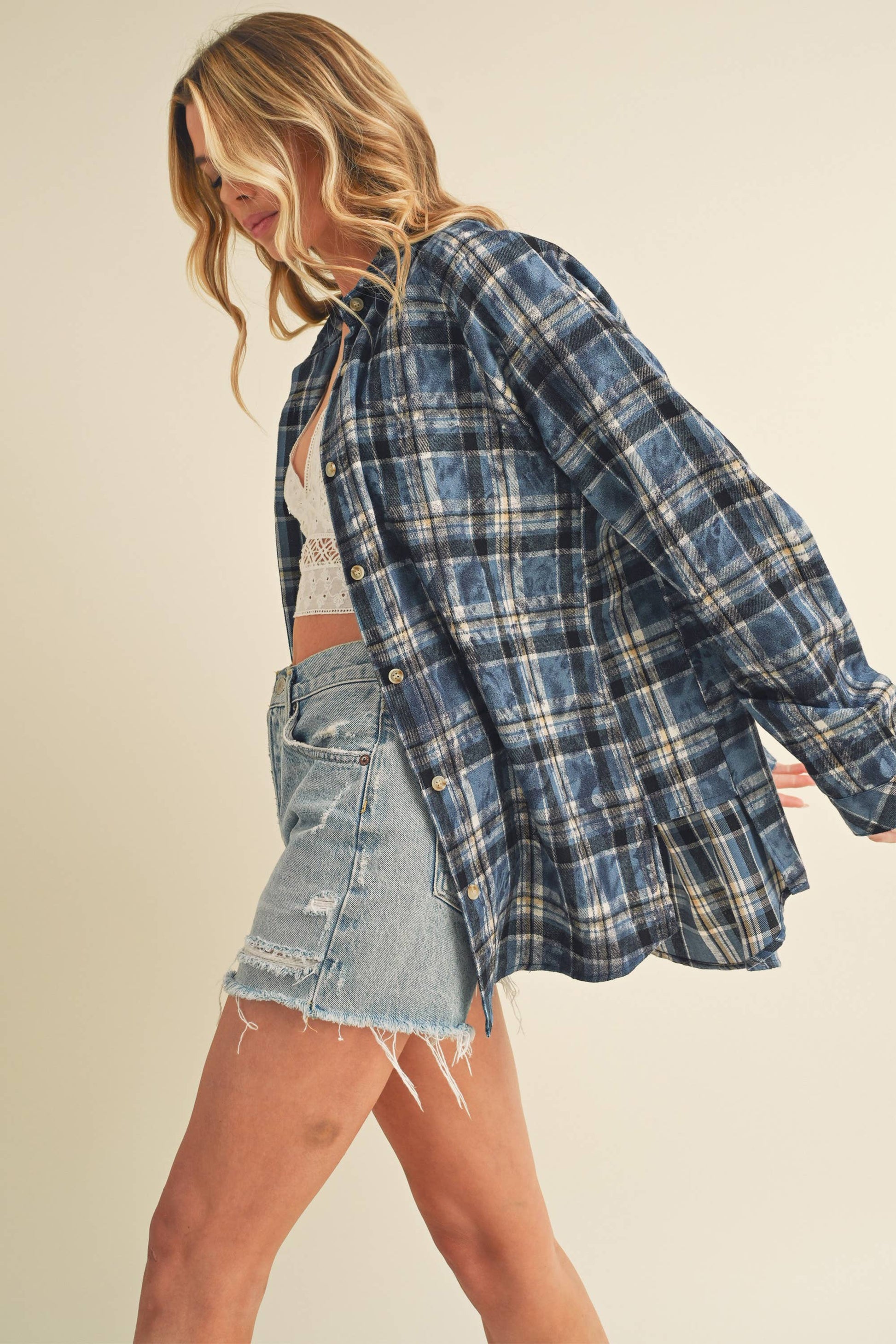 Blue Laura Plaid Washed Overside Flannel Shirt