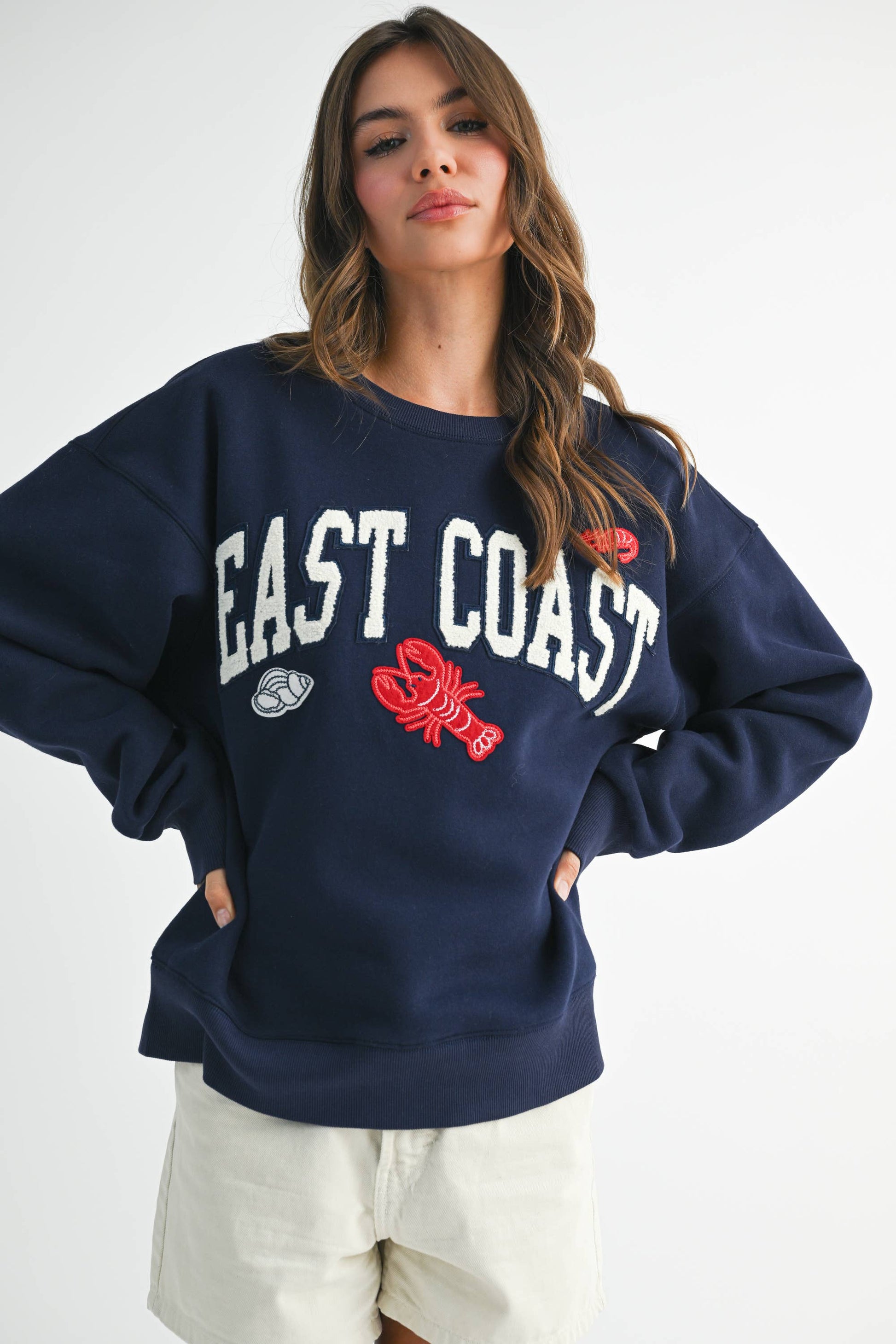 Channeling seaside nostalgia and playful coastal motifs while staying cozy and stylish with the East Coast NE Graphic Fleece Oversized Pullover. Crafted from soft fleece, its roomy fit offers comfort for all-day wear, making it perfect for chilly weather or casual outings. The distinctive East Coast graphic adds a unique touch that celebrates regional pride while keeping you warm and relaxed. This pullover is an easy way to feel comfortable and express your style with confidence, and it's the perfect throw-on-and-go sweatshirt for crisp mornings and cool evenings.