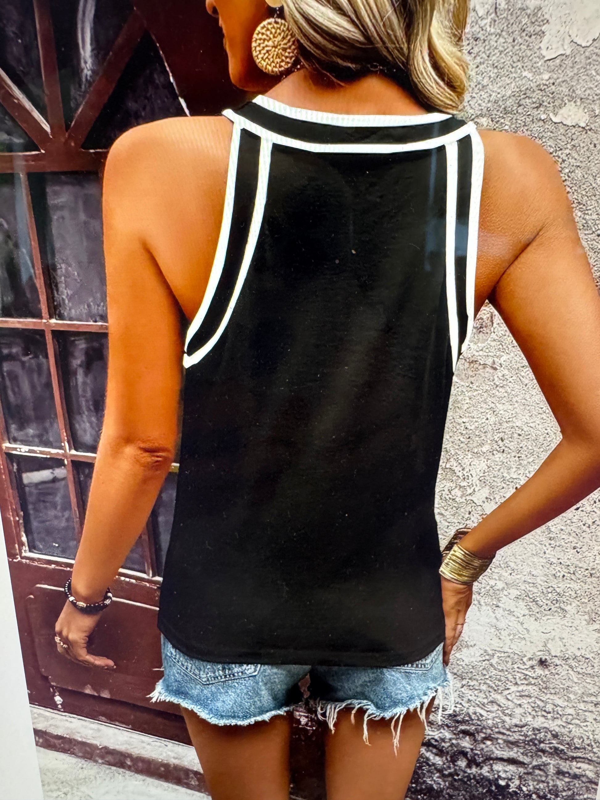 Step into effortless style with the Black and White Racer Long Tank. Its sleek contrast design adds a fun twist to your casual wardrobe, while the long fit gives you extra coverage and comfort for all-day wear. Perfect for layering or rocking on its own, this tank brings a playful edge to any outfit.