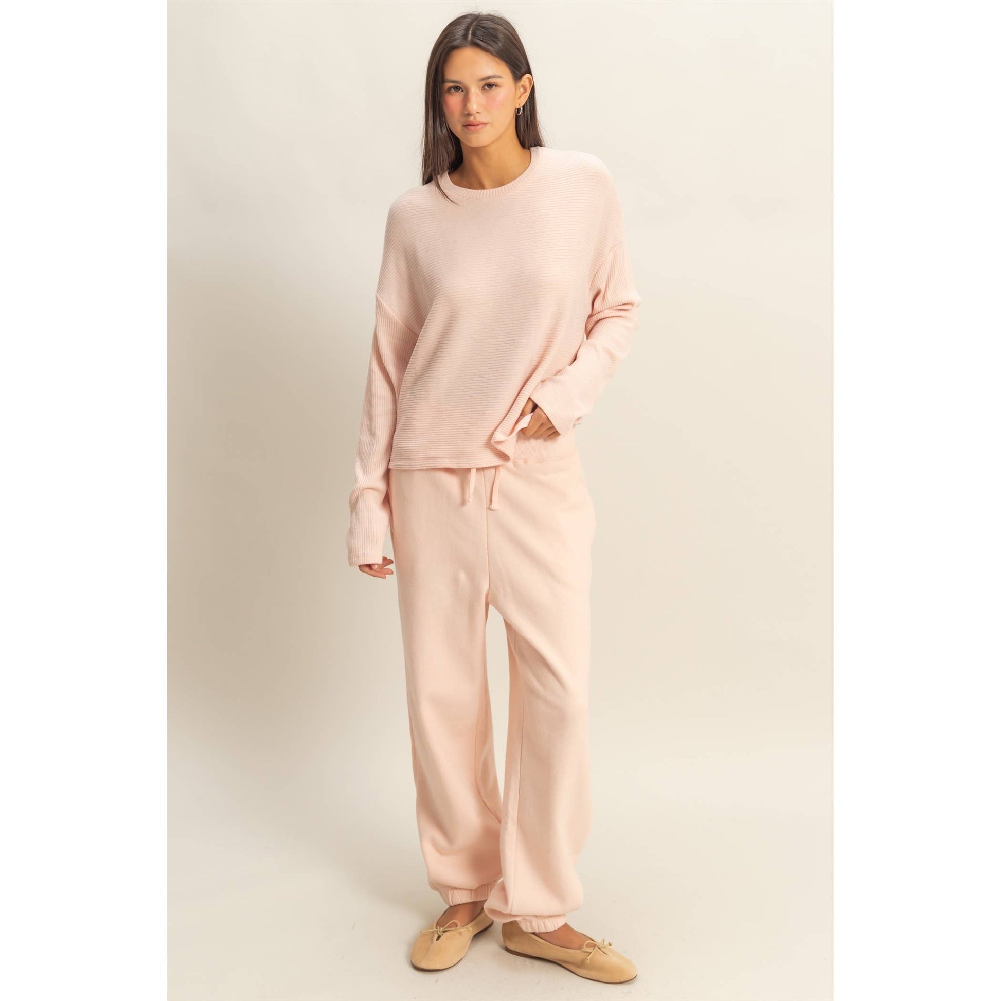 Dusty Pink Drop Shoulder Long Sleeve Knitted Top