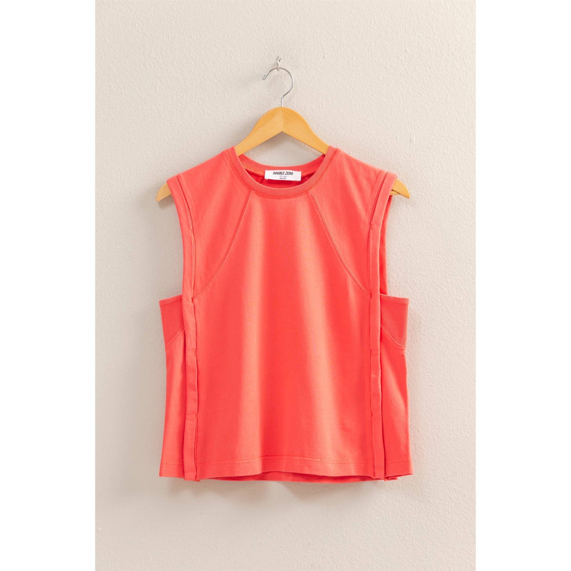 Coral Round Cotton Neck Sleeveless Boxy Top