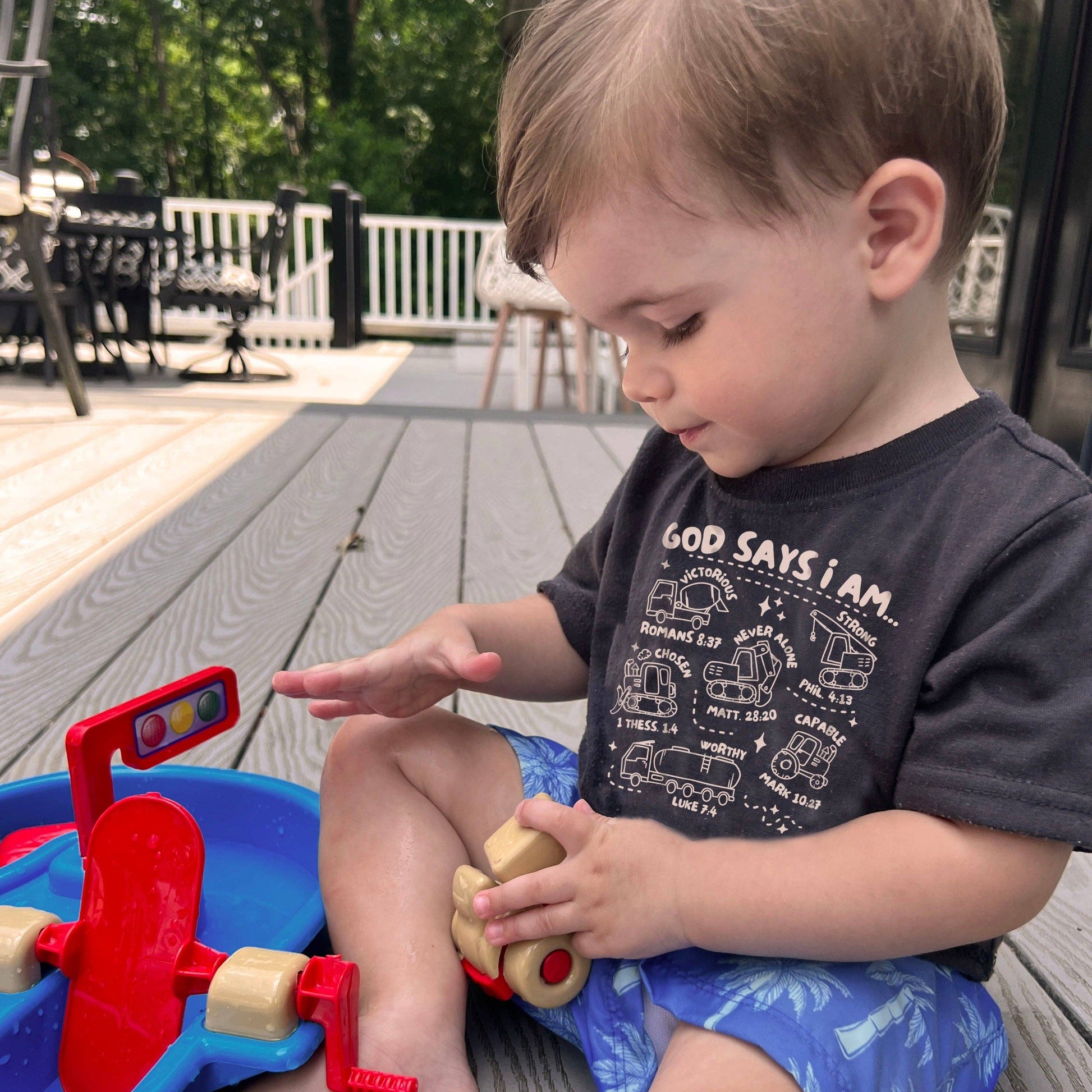 Grey 'God says I am' Trucks Kid Inspirational Graphic Tee