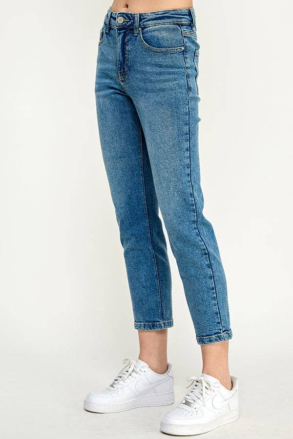 Classic blue jeans that refuse to take themselves too seriously. This comfort-fit pair features a relaxed silhouette through the thigh and a bootleg cut that hits just right at the ankle—perfect for pairing with everything from sneakers to boots. High-rise styling flatters and feels great, giving you that effortless vibe without sacrificing support. Slip them on and forget you're wearing them (in the best way possible).