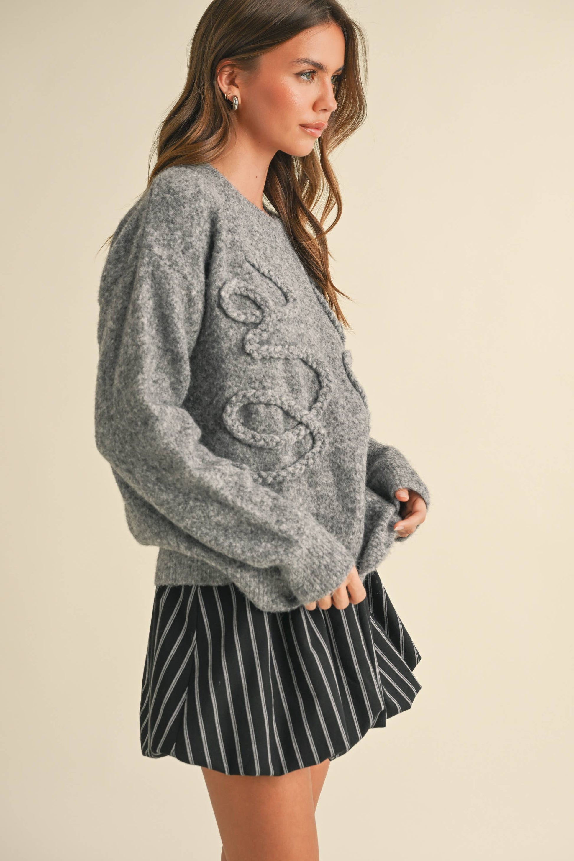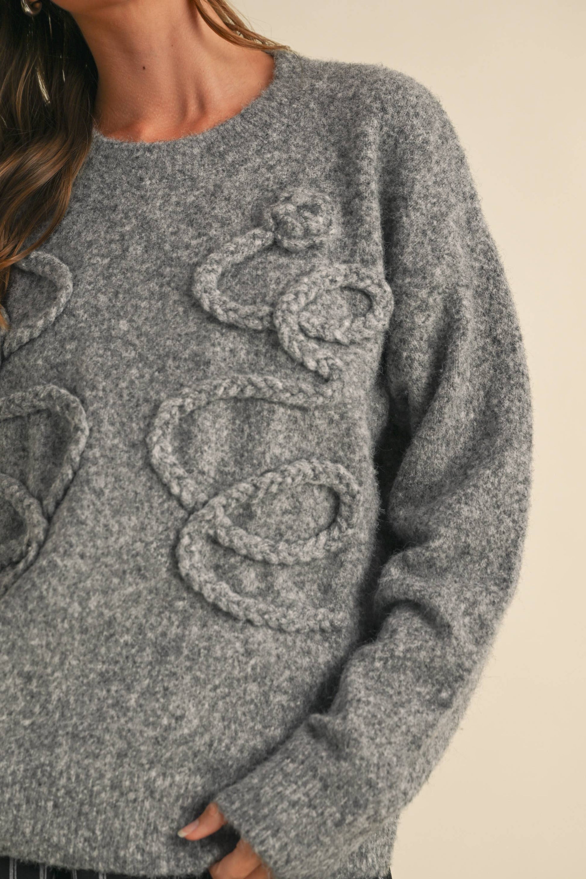 Cozy up in this grey oversized sweater featuring a charming wrapping floral vine detail that adds a touch of whimsy to your look. Soft to the touch and perfectly roomy, it’s your new go-to for playful comfort and effortless style.