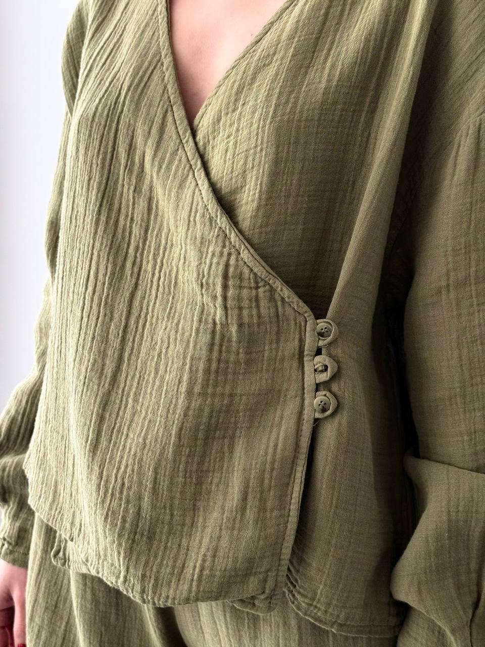 Soft muslin breezy shorts-top set. There are laces inside the top, and shoulder elastics to ensure fit and comfortable fit. Matching shorts with elastic waist. 100% cotton Made in Turkey.