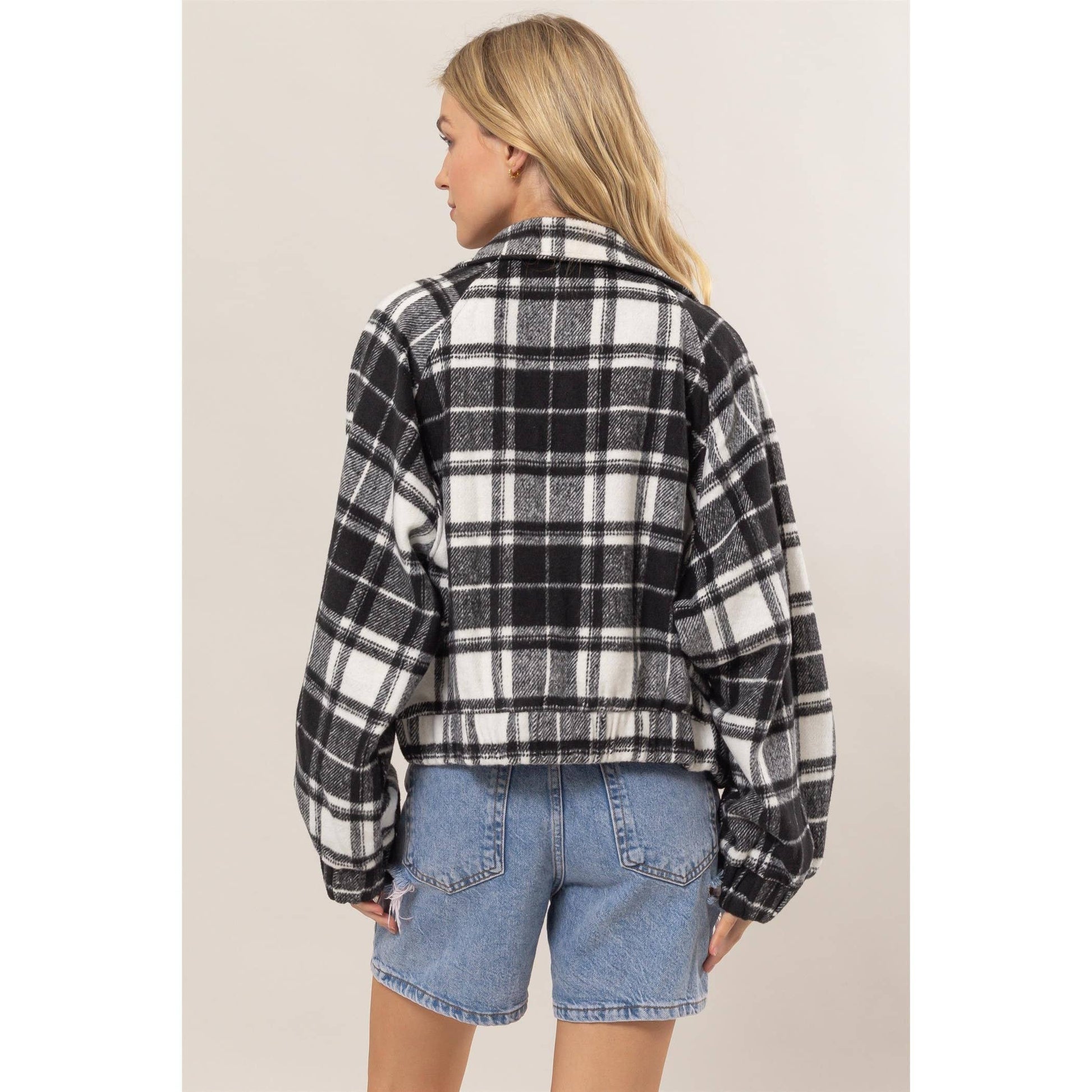 Soft Flannel Black Plaid Zip-Up Moto Jacket