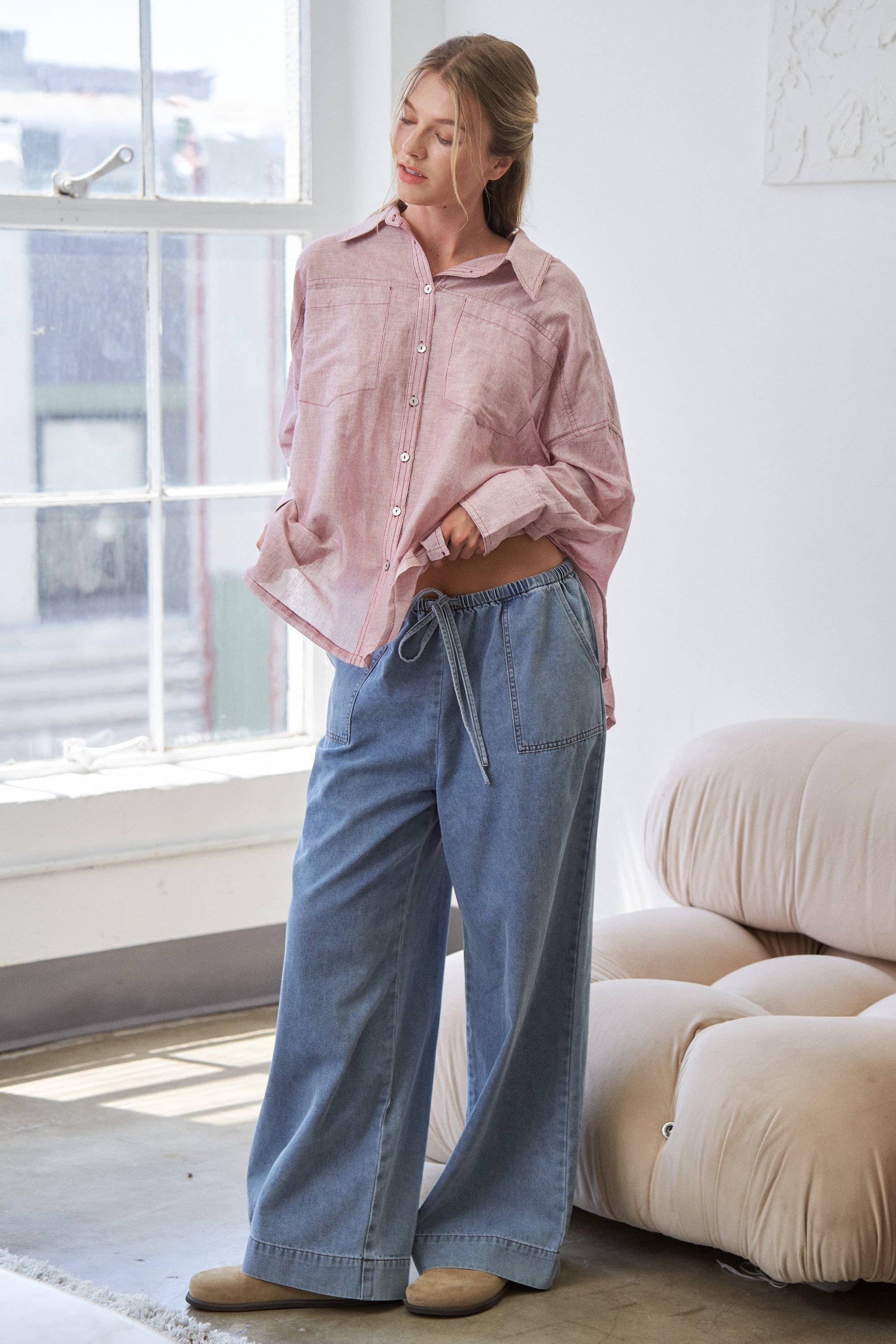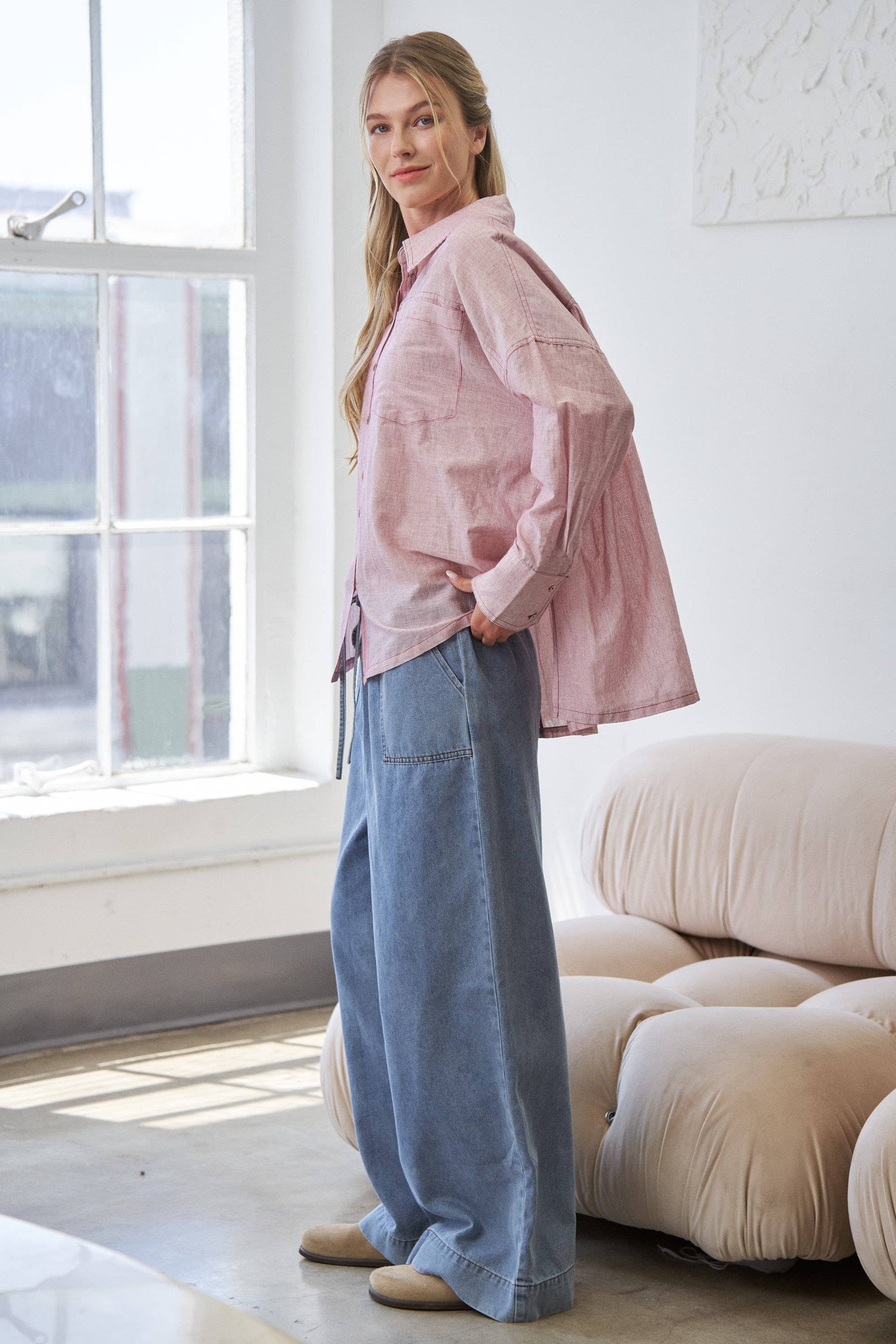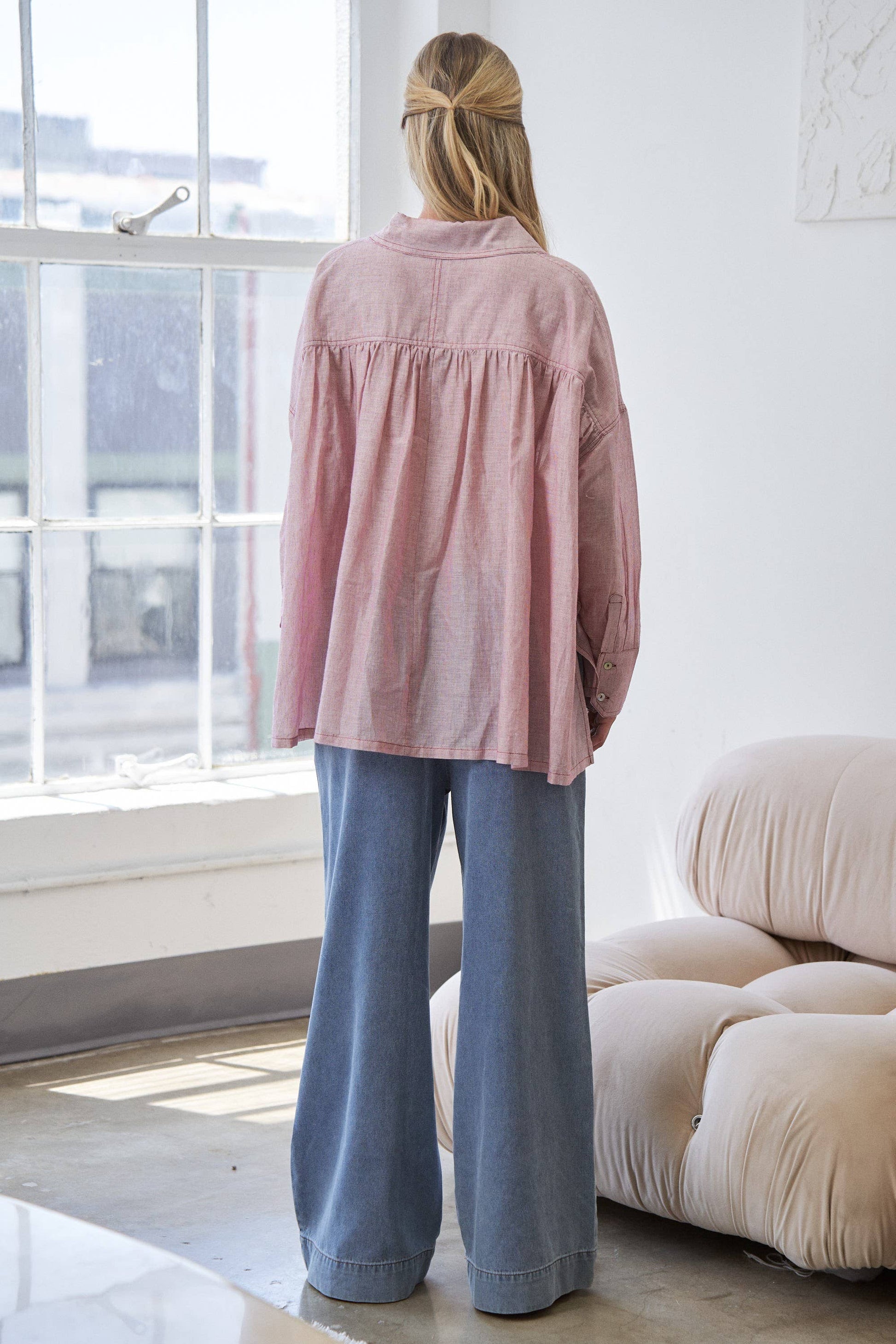 Red Mira Lightweight Sheer Oversized Button-Up Shirt