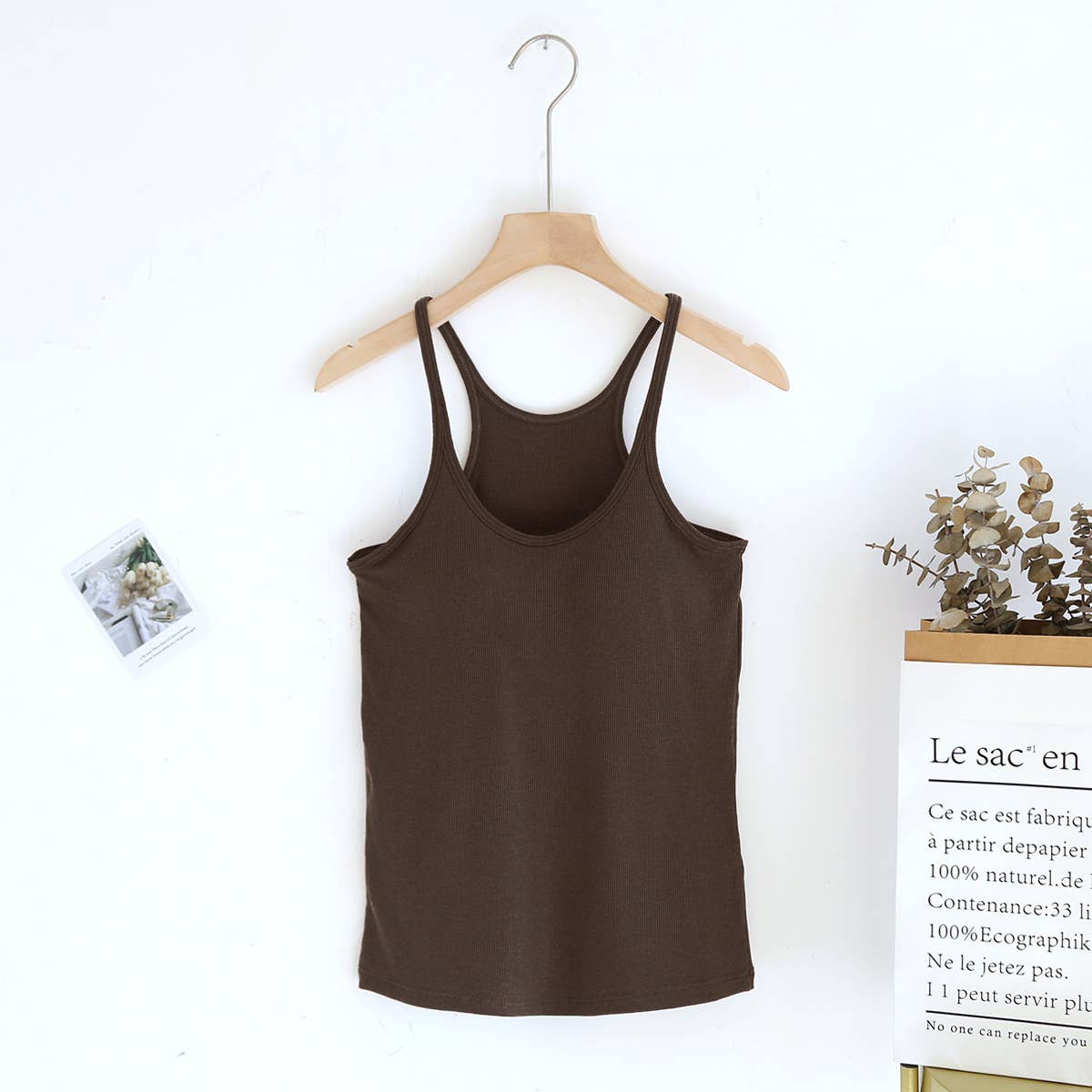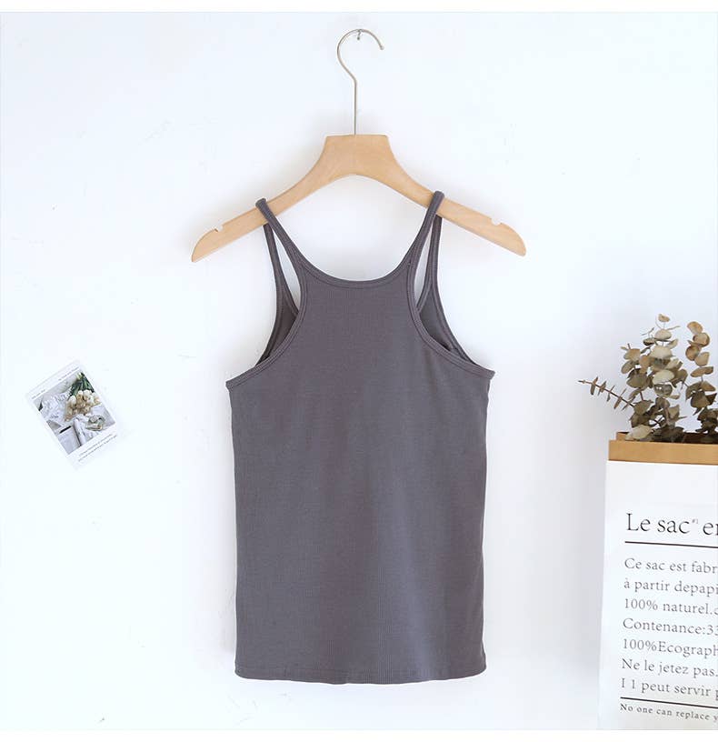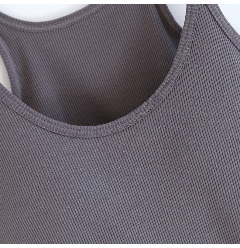 This black athletic tank top features a U-neck design and a built-in bra insert for maximum support and comfort during your workouts. The ribbed material provides a snug fit and the bra insert ensures proper coverage while exercising. Stay stylish and supported with this versatile tank top.