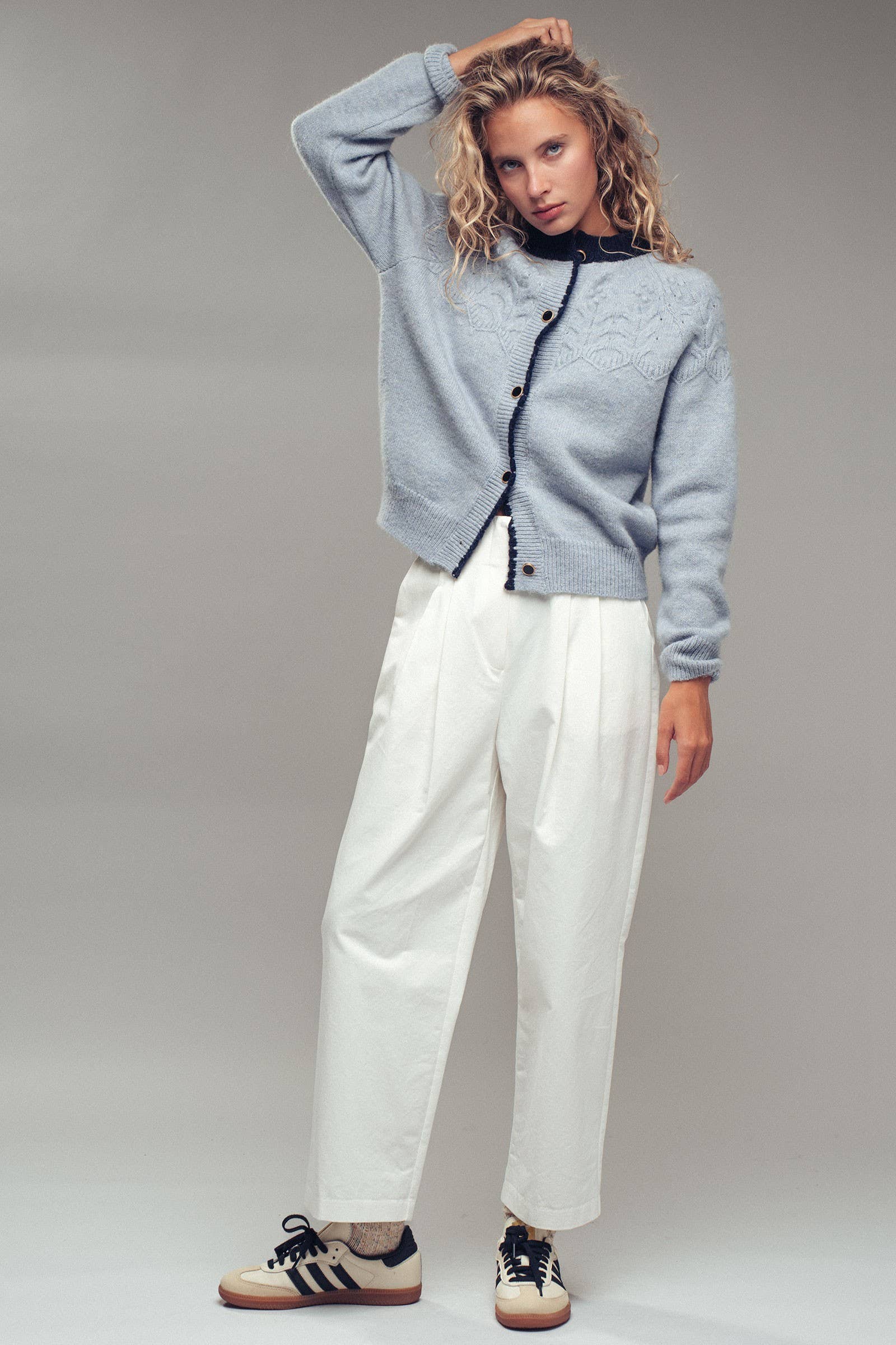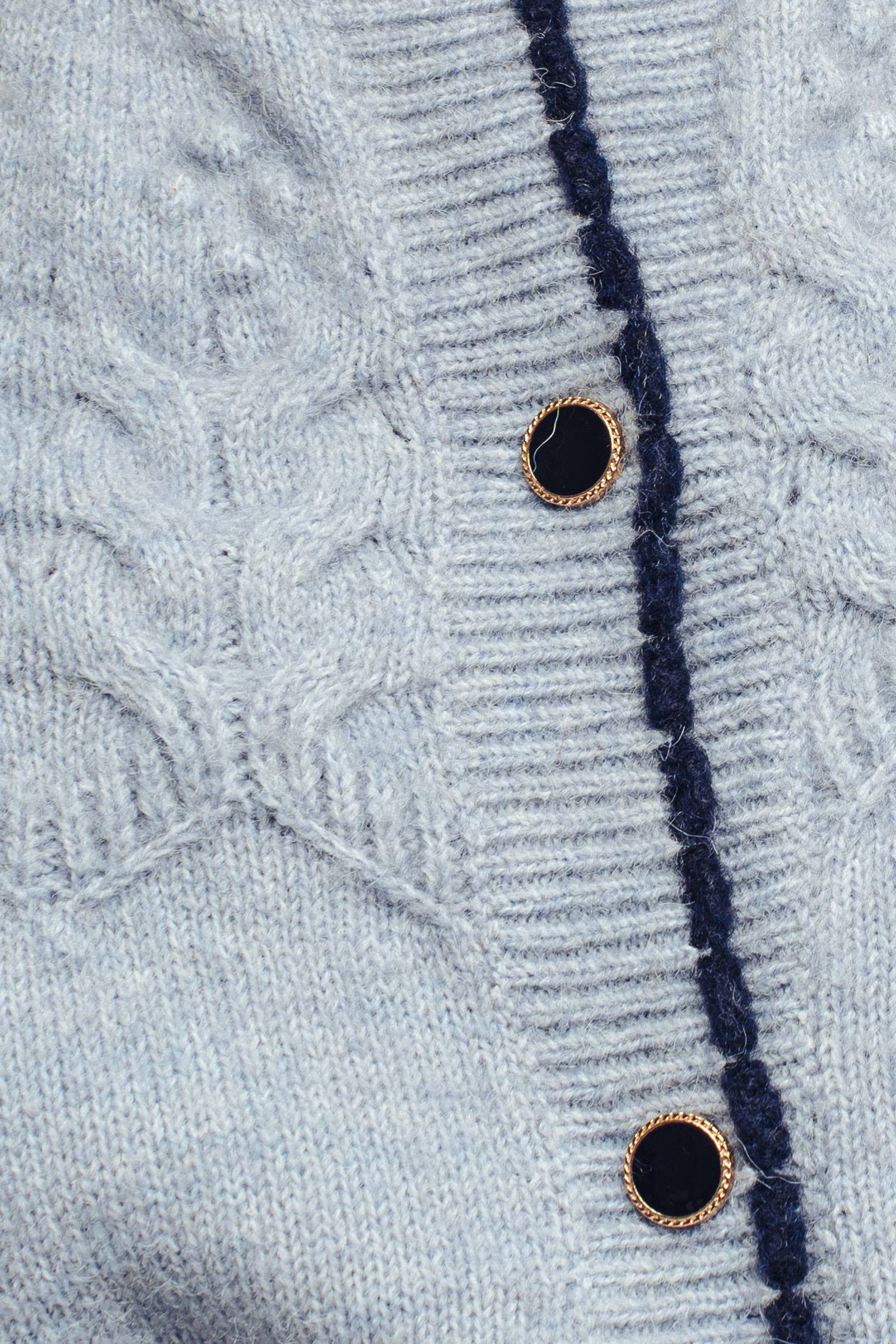 Light Blue w/ Navy Detail and Accent Buttons Cardigan Sweater