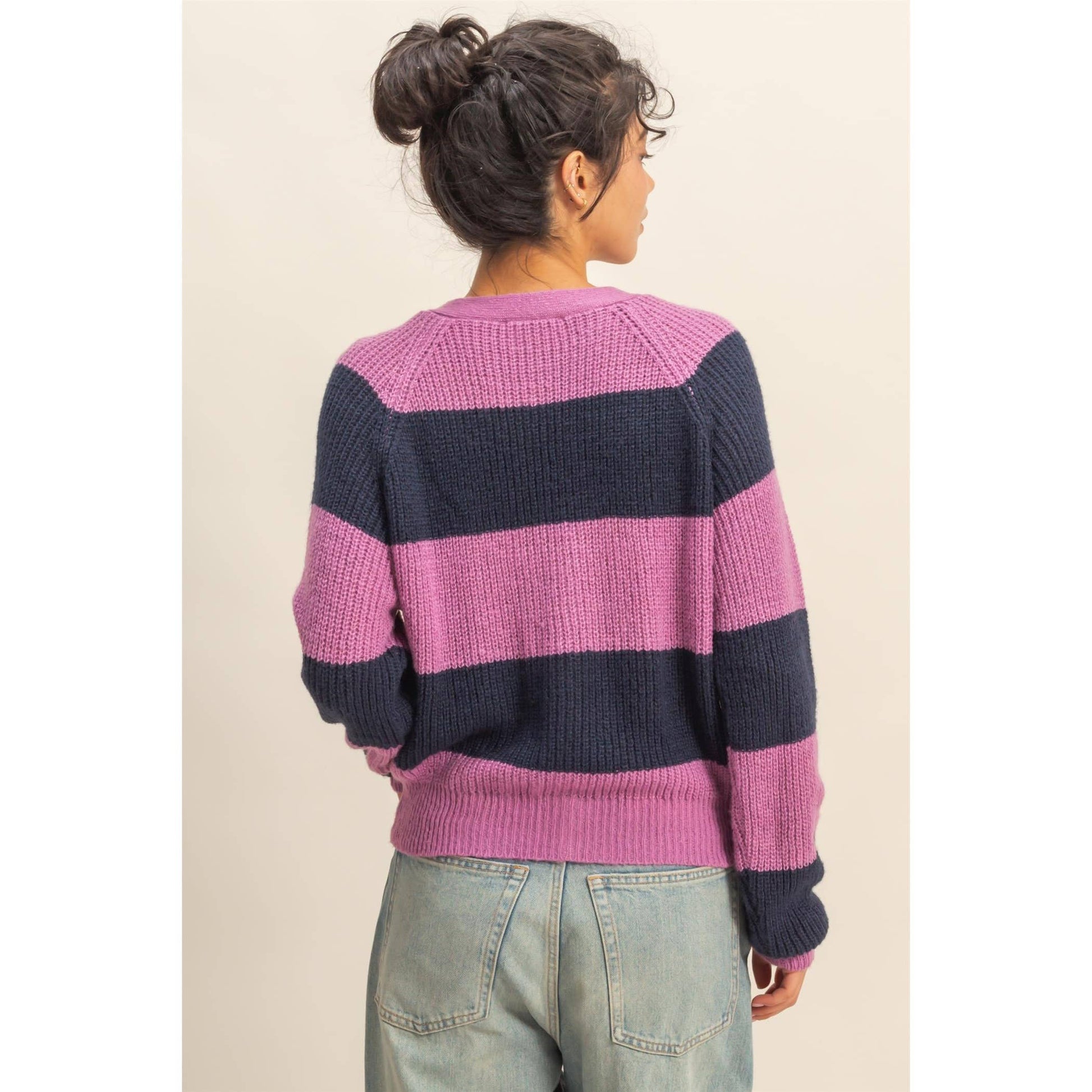 Navy and Purple Striped Button-Front Cardigan