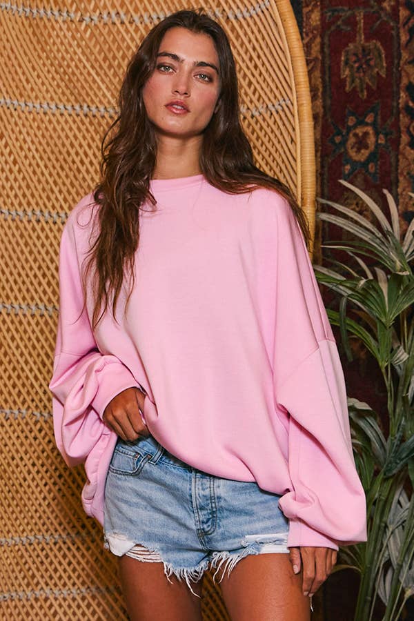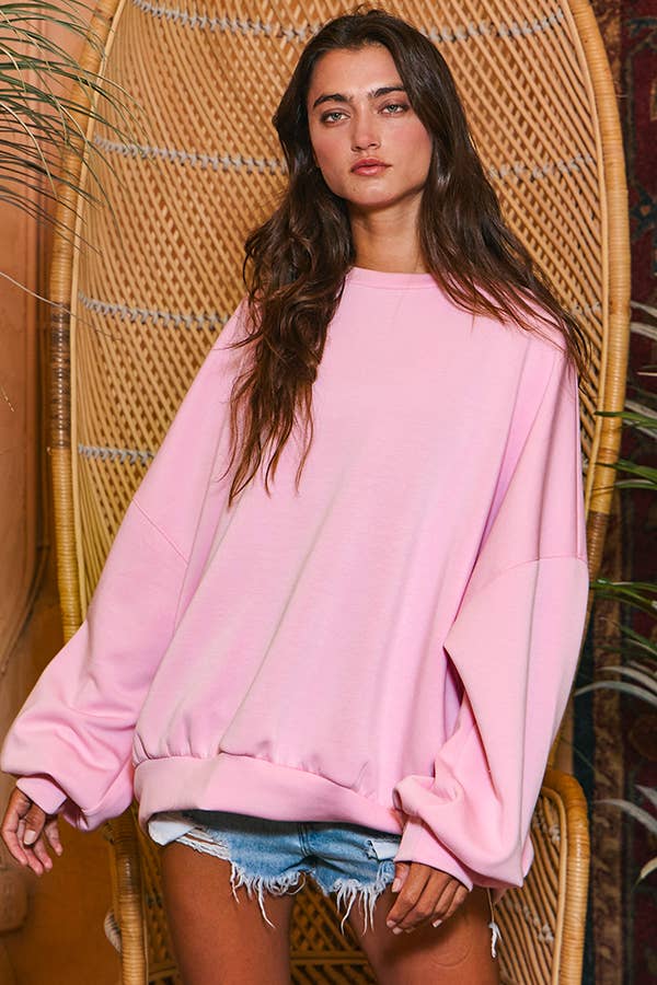 Bubble Pink Oversized Solid Super Soft Scuba Sweatshirt