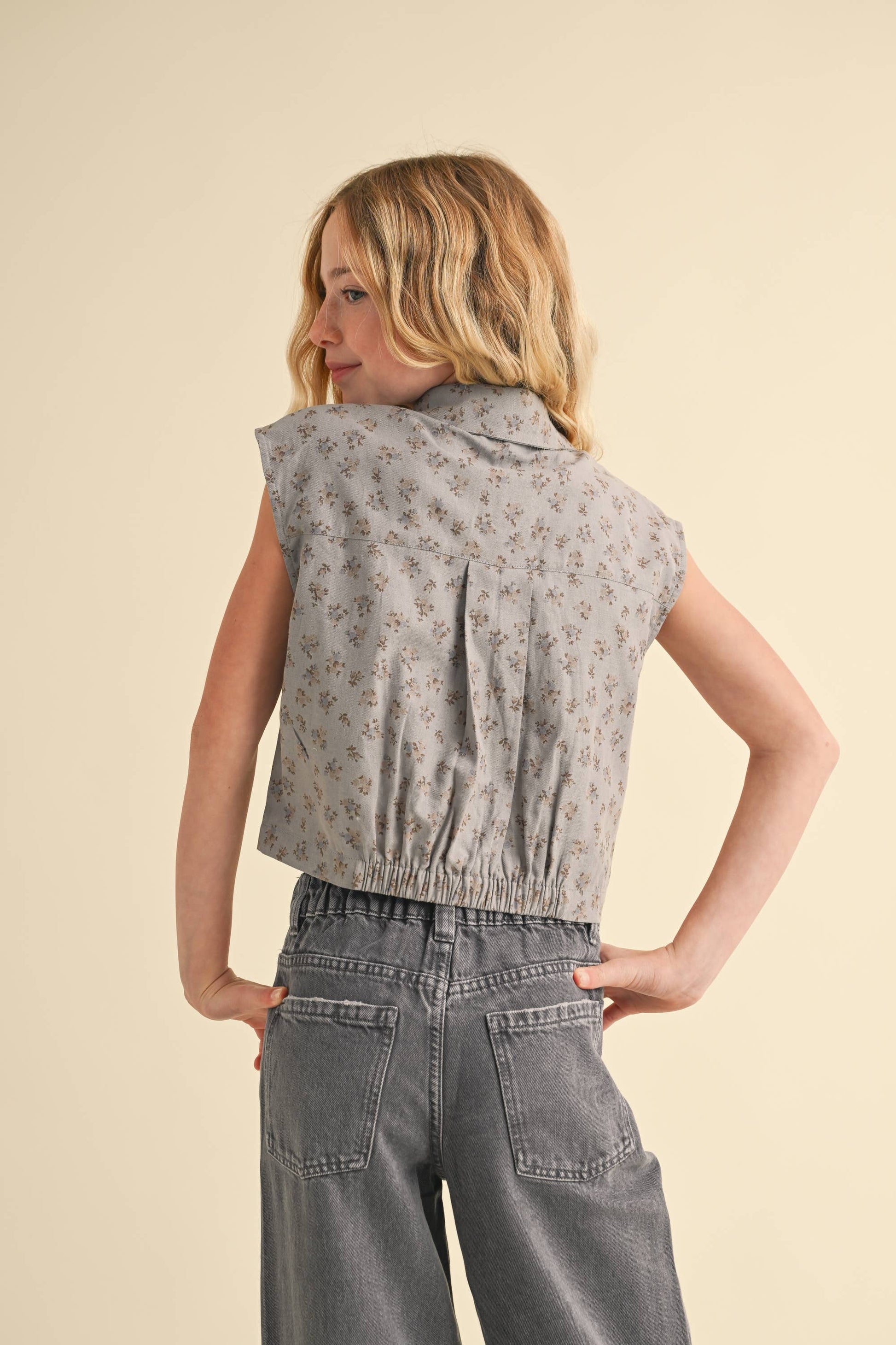Gray with Floral Detail Tween Crop Top